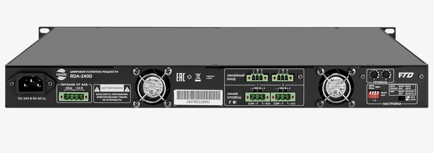 Два независимых канала, каждый из которых выдает 240 Вт.