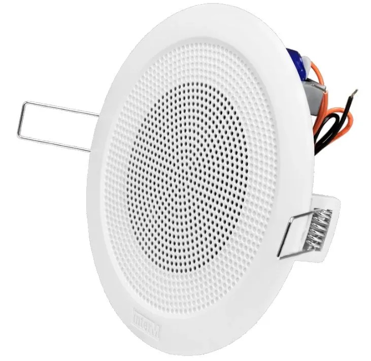 Данная модель предназначена для интеграции в навесные потолки или стеновые конструкции. Монтаж громкоговорителя осуществляется посредством двух металлических пружинных фиксаторов, которые надежно закрепляют устройство, прижимая его к внутренней стороне монтажной поверхности. Декоративная решетка изготовлена из белого пластика. Акустическая система может работать в сетях с напряжением 70 и 100 В.